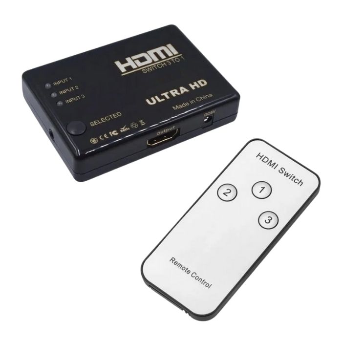 Este conmutador (switch) HDMI de alto rendimiento permite conectar hasta tres dispositivos de entrada (consolas de juegos, decodificadores, laptops o reproductores de Blu-ray) a una sola pantalla de alta definición. Es la solución perfecta para televisores o monitores con puertos HDMI limitados. Incluye un control remoto infrarrojo que permite cambiar entre fuentes de video cómodamente desde el sofá, además de un botón de selección manual en la unidad principal.