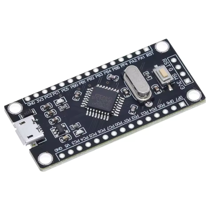 El microcontrolador Microchip AVR® RISC de 8 bits de alto rendimiento y bajo consumo combina memoria flash ISP de 64 KB con capacidades de lectura mientras escribe, EEPROM de 2 KB, SRAM de 4 KB, 27 líneas de E/S de uso general, 32 líneas generales de E/S registros de trabajo específicos, dos temporizadores/contadores flexibles con modos de comparación y PWM, un UART con HW LIN, un convertidor A/D de 10 bits y 11 canales con dos etapas de entrada de ganancia diferenciales programables, un convertidor D/A de 10 bits, un Temporizador de vigilancia programable con un oscilador individual interno, puerto serie SPI, un sistema de depuración en chip y cuatro modos de ahorro de energía seleccionables por software. El dispositivo funciona entre 2,7 y 5,5 voltios.