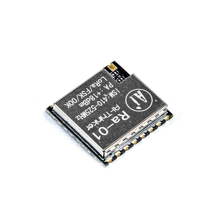 Módulo LoRa RA-01, ideal para comunicaciones inalámbricas de largo alcance en aplicaciones IoT, automatización industrial y proyectos de telecomunicaciones. Utiliza tecnología LoRa para ofrecer una alta sensibilidad y un bajo consumo de energía.