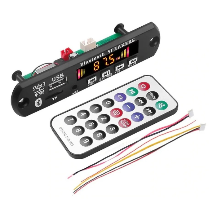 Módulo reproductor multifuncional compatible con MP3, Bluetooth, SD, Radio FM y entrada auxiliar. Ideal para proyectos de audio en sistemas de sonido portátiles, bocinas amplificadas y DIY.