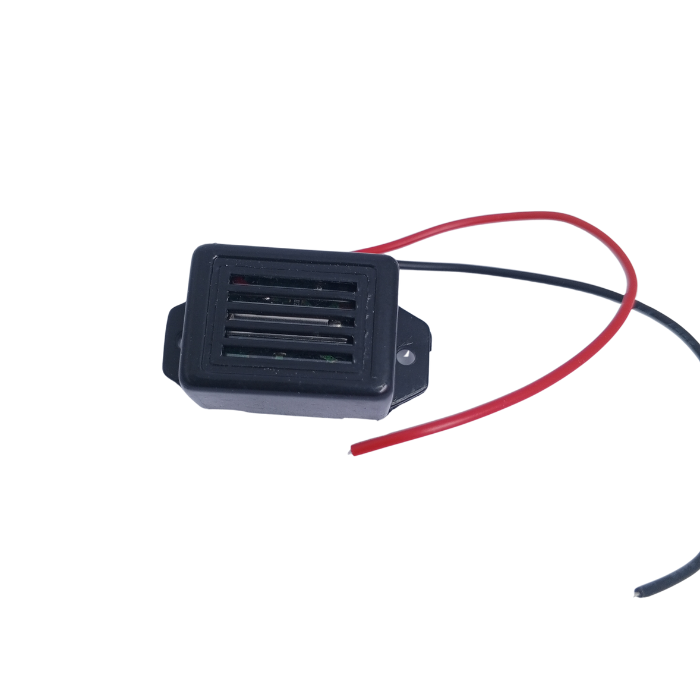 Este buzzer electrónico de 12V es un componente compacto y versátil diseñado para generar una señal sonora de aviso en una amplia variedad de aplicaciones electrónicas y proyectos de automatización. Ideal para sistemas de alarma, indicadores de estado, confirmación de operaciones en equipos, juguetes o cualquier circuito que requiera una señal audible discreta pero efectiva. Su encapsulado robusto lo protege y su facilidad de conexión, gracias a sus cables integrados (rojo para positivo, negro para negativo), permite una rápida integración en tus diseños.