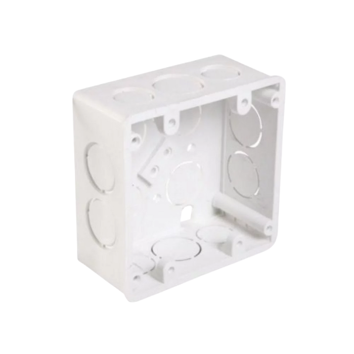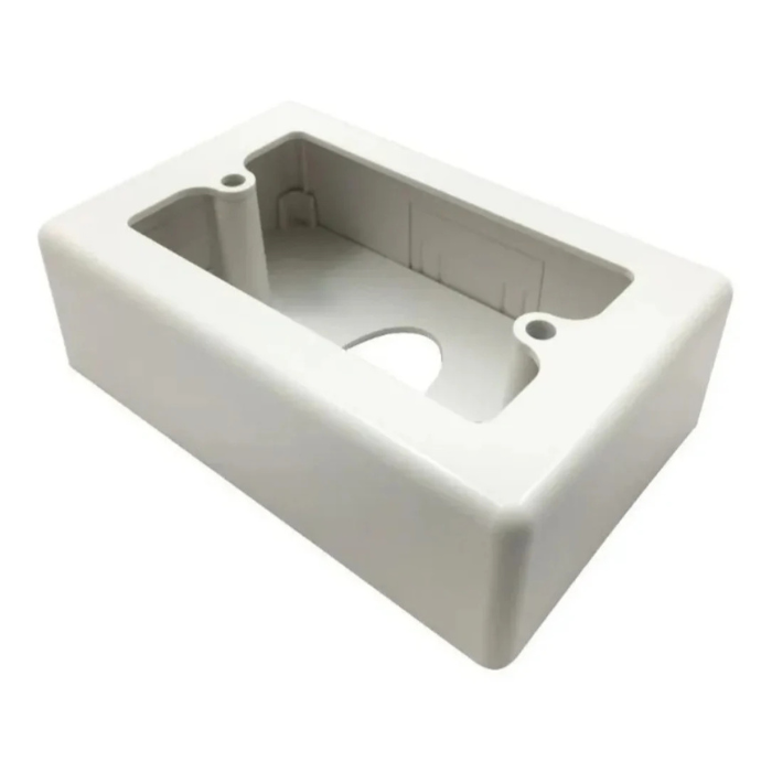 Caja eléctrica rectangular 2x4 fabricada en PVC resistente, ideal para instalaciones empotradas o superficiales en paredes. Diseñada para alojar interruptores, tomacorrientes o conectores eléctricos, brindando aislamiento, seguridad y facilidad de instalación. Sus perforaciones laterales permiten un acceso rápido para el paso de conductores.